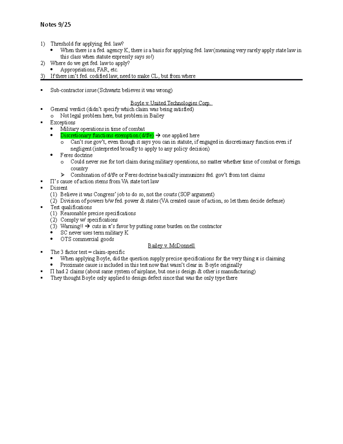 Notes 9 25 Chapter Main Points Notes 9 Threshold For Applying Fed Law When There Is A Fed Studocu